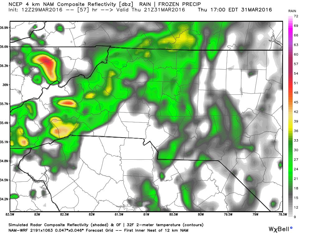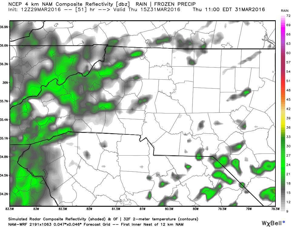 By the evening hours on Thursday we will be back into a situation of isolated showers. Again I think most of the heavy activity on Thursday stays confined to the mountains and foothills.