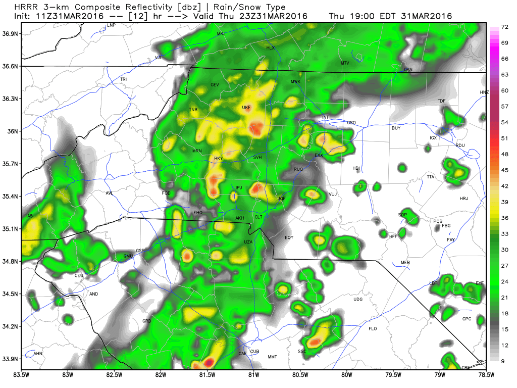 As we start to take an hour by hour look at the models around 11 am my concern and area of focus will be triggered toward the southwestern areas of the county as the models are indicating possible hail chances for the areas in and around Enochville, China Grove, Landis & Kannapolis.