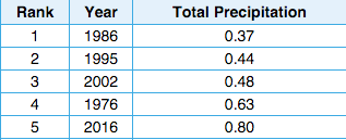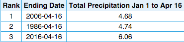 How does this stack up for the year? When comparing time periods of Jan 1st - April 16th this is currently the 3rd driest year on record in the county to this point.