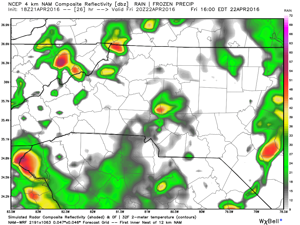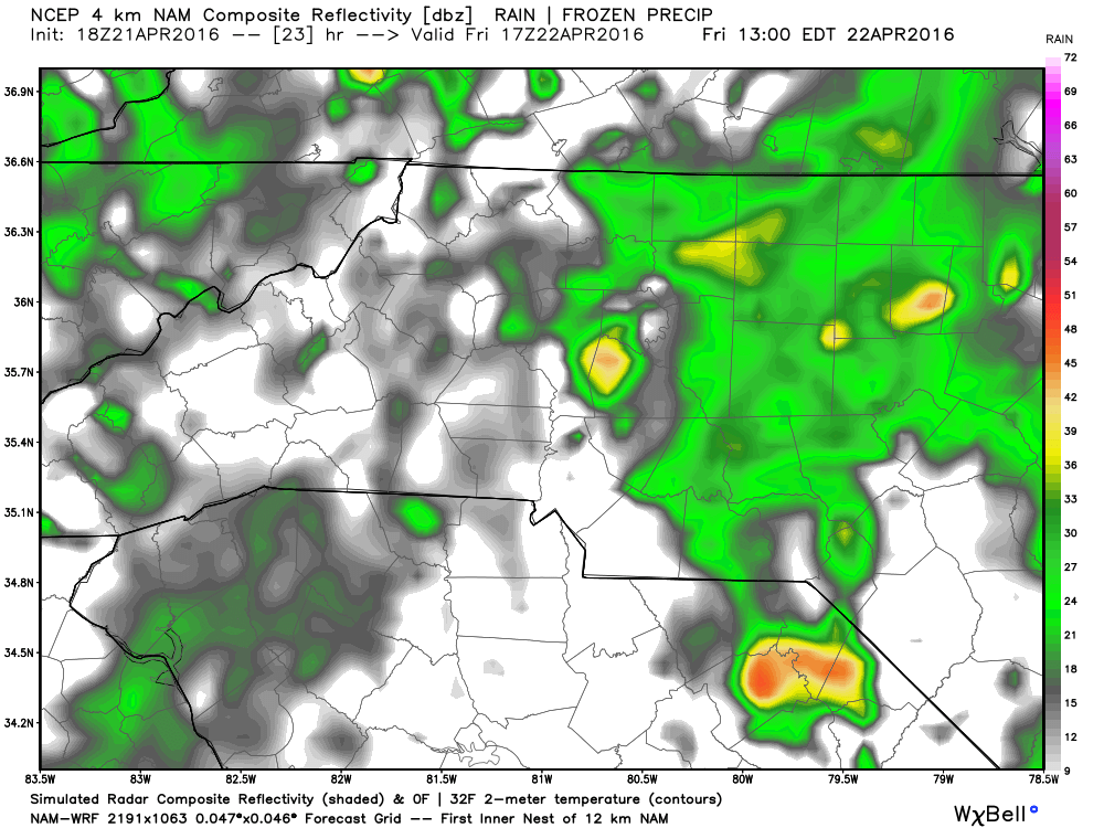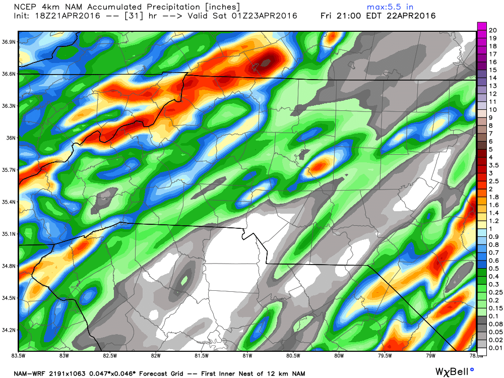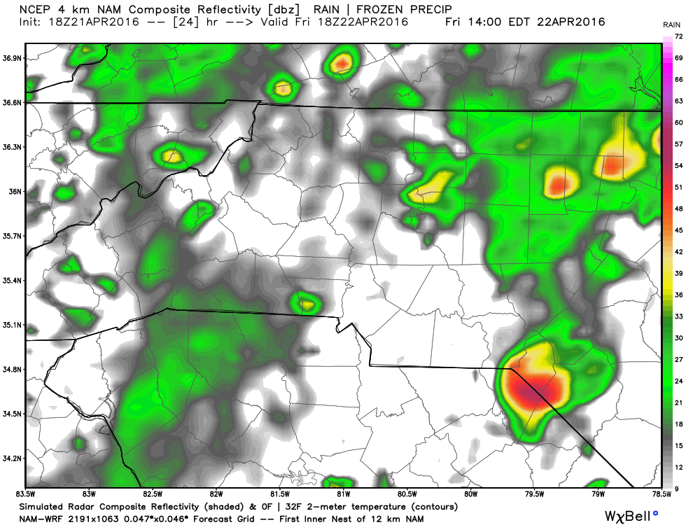 Now again I have to reiterate this is the only model run to this point that has been pushing for the amount of rains listed in this post.Up to this point I have only been forecasting around a quarter of an inch of rain being possible as most of the activity will be isolated. However, if this model run holds true those light showers and drizzle could give us the chance of around a half of an inch of accumulation with a thunderstorm passing through behind them.