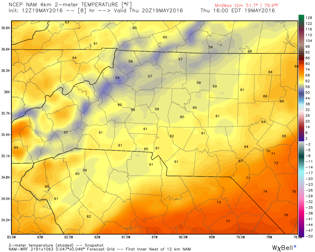 The temperatures will not move much as we hover around 60º for the high.