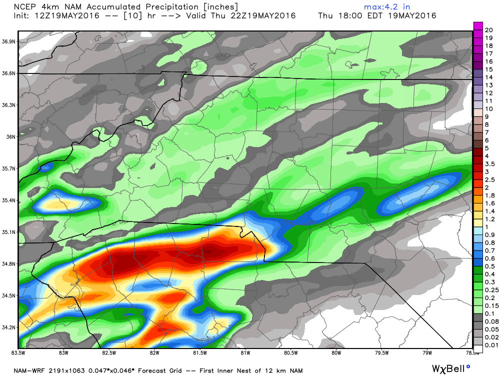 I know the question that is in the back of some of your minds is what about activities involving the NASCAR Race? Friday night activities at the track are probably in the most jeopardy at this point. I do believe the rain will move out during the morning hours and midday hours on Saturday. Looking at around an inch or more of rain from Friday night to Saturday afternoon.
