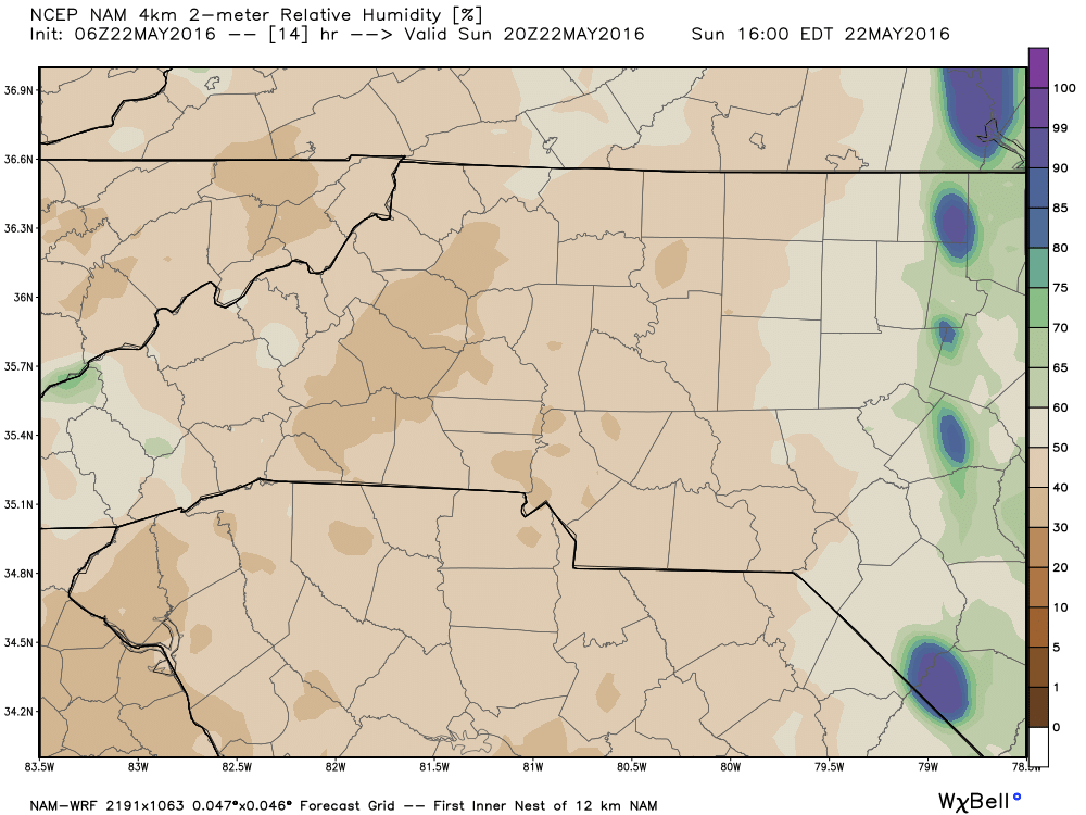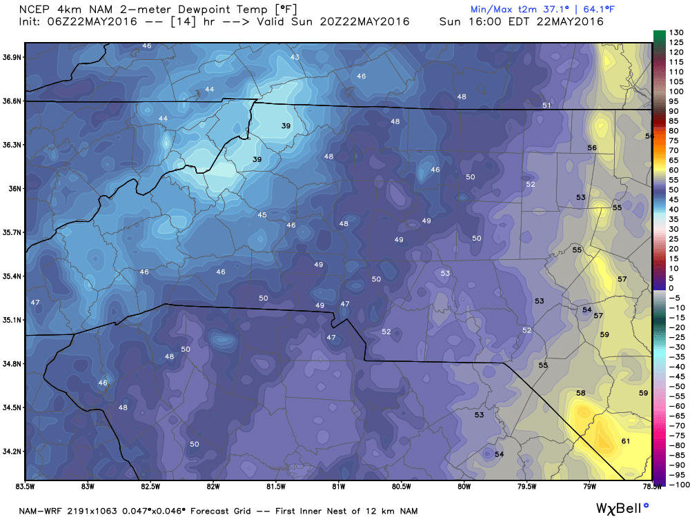 The Dew Points will be very comfortable in the upper 40's.
