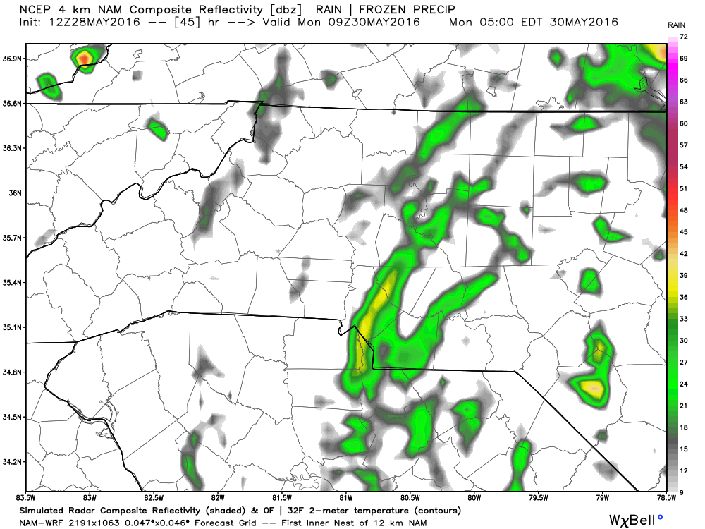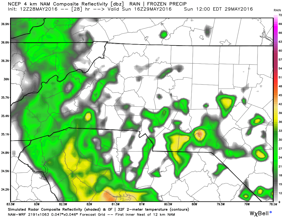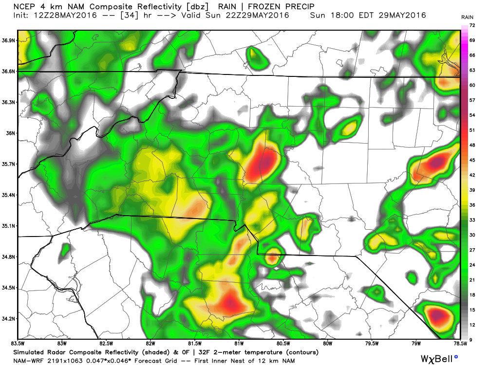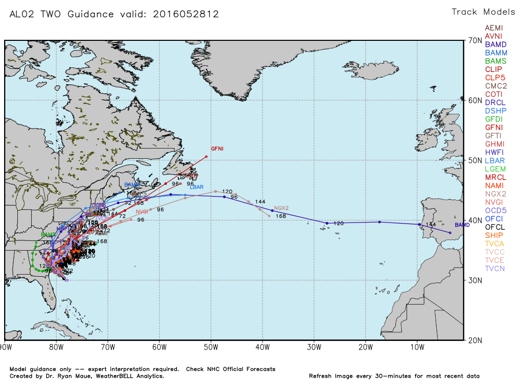 Most of the spaghetti plots pictured above show this storm making landfall in South Carolina then hugging the coast. If this track holds true we will see less rainfall as most will stay to our east. If that does occur that's the best bet for the fans heading to the 600. However, if the storm drifts to the west and moves a little further inland the rain impacts will be felt in our area. I will continue to monitor the models and provide forecast updates as we go through the Memorial day weekend.
