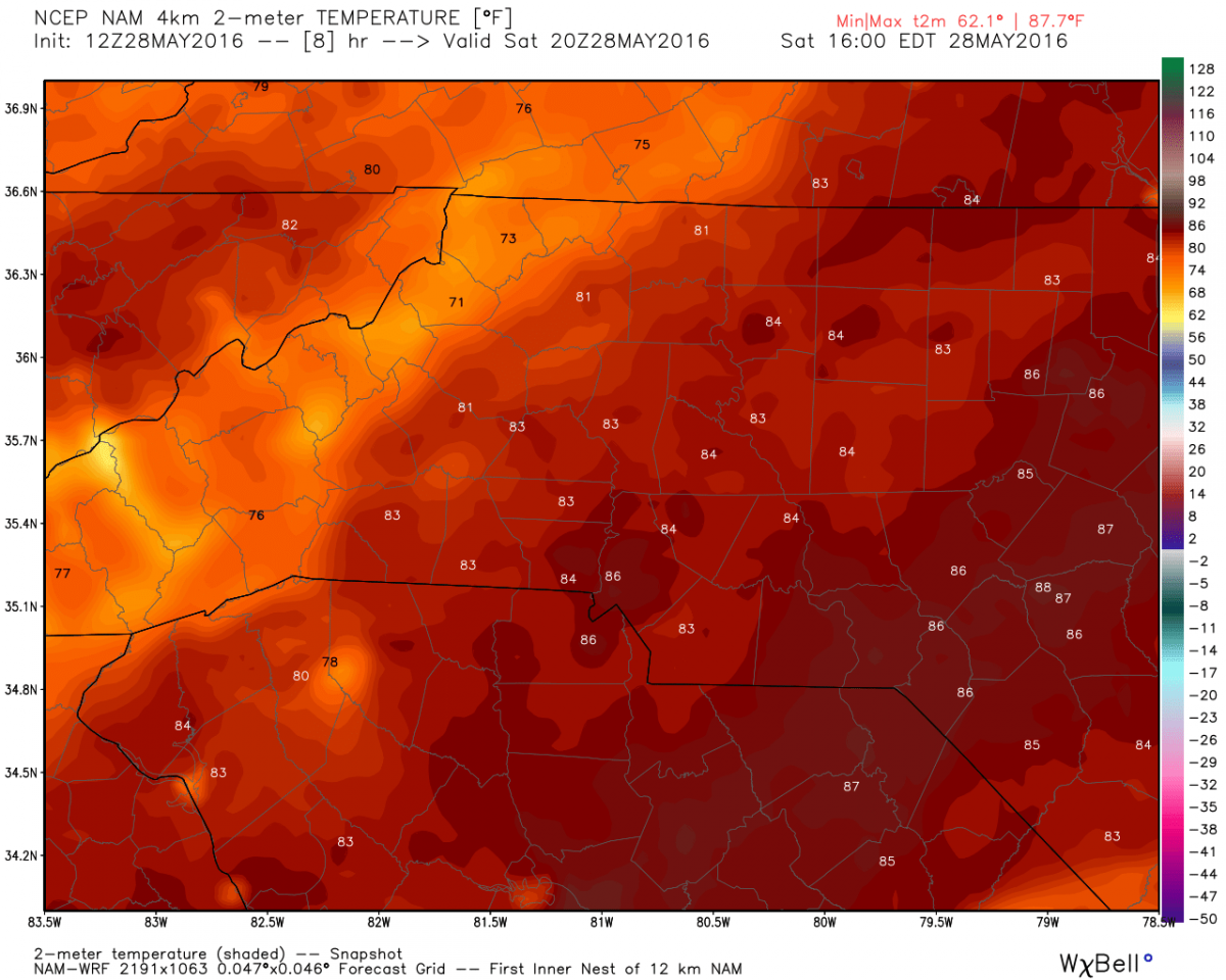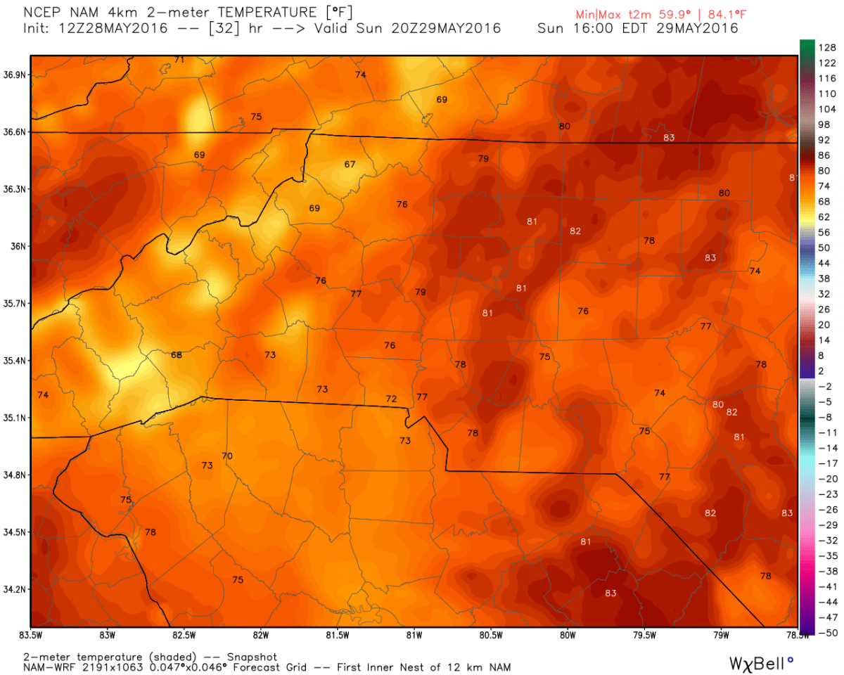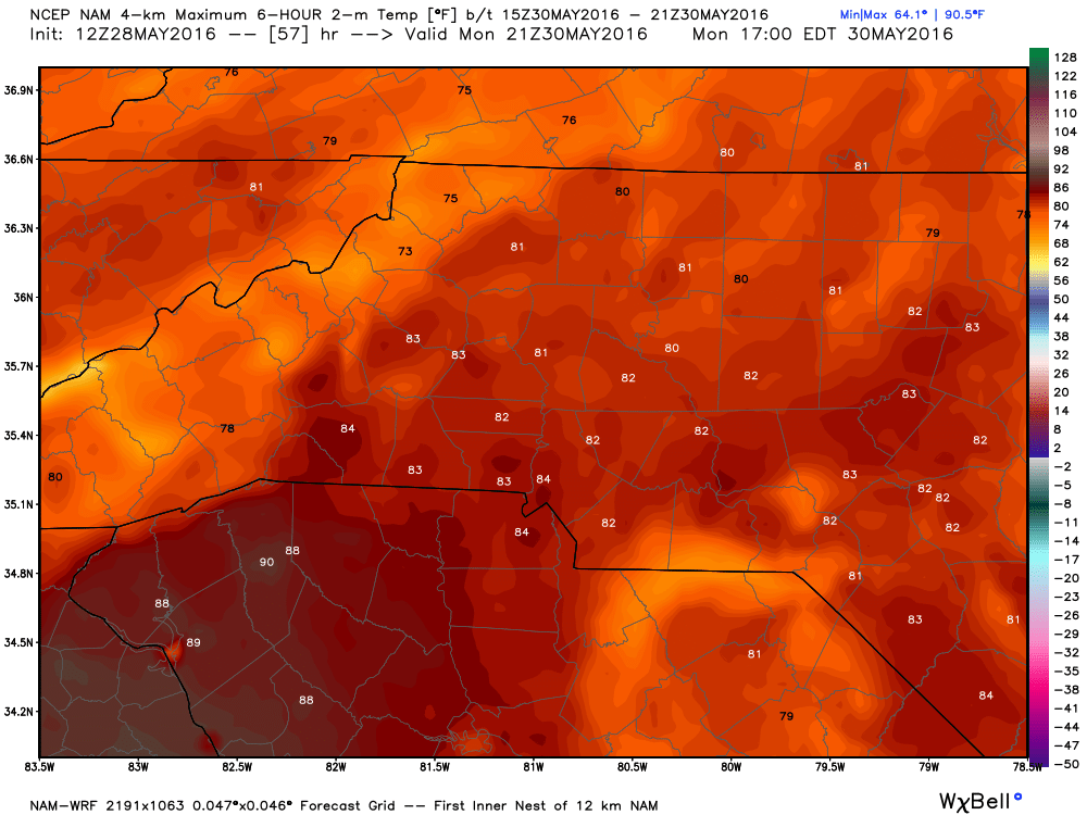High temperatures tomorrow will be in the low 80's looking at 81º at 4 pm tomorrow.