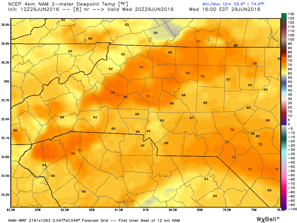 Dew Points will be in the upper 60's today making the air feel uncomfortable