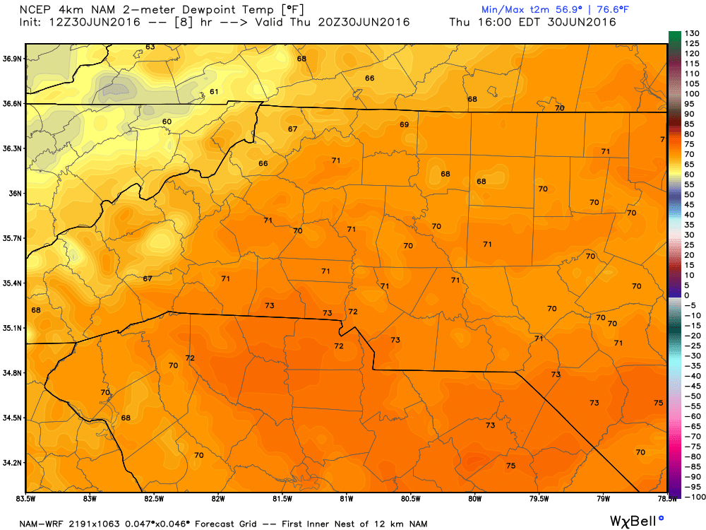 The Dew Points will be around 70º making the air feel oppressive outside.