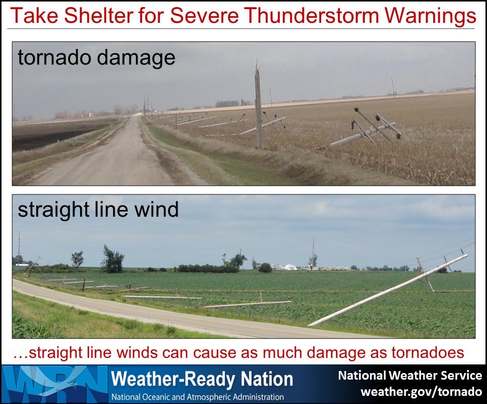 advertise your local business here »I had a lot of inquiries yesterday after the strong storms moved through the county and most all of them were the same question. "Did we just have a tornado?" Now honestly it's a great question and I can certainly see how you might suspect that a tornado may have touched down. What we actually experienced were straight line winds. and possibly a weak down burst. The damage from both tornadoes and straight line winds is extremely similar as you can see from the graphic below.