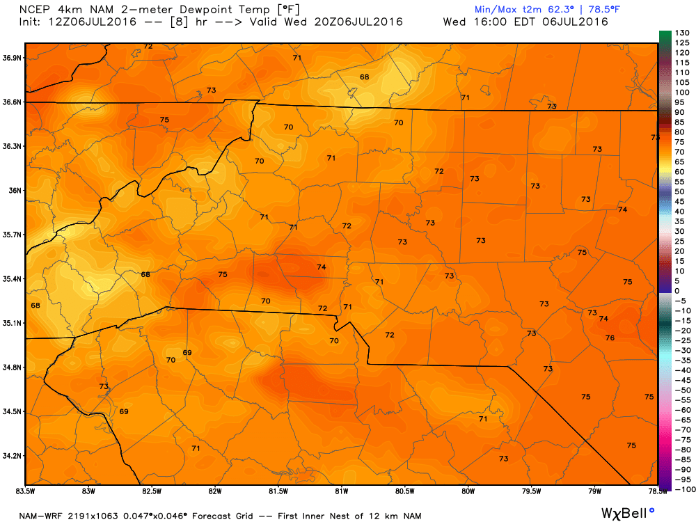 The dew points will be in the low to mid 70's making the air outside feel oppressive.