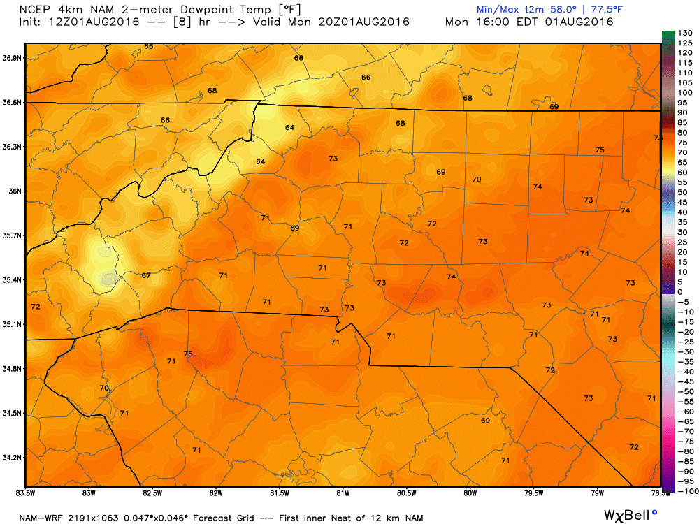 Dew Points will be oppressive today in the low 70's