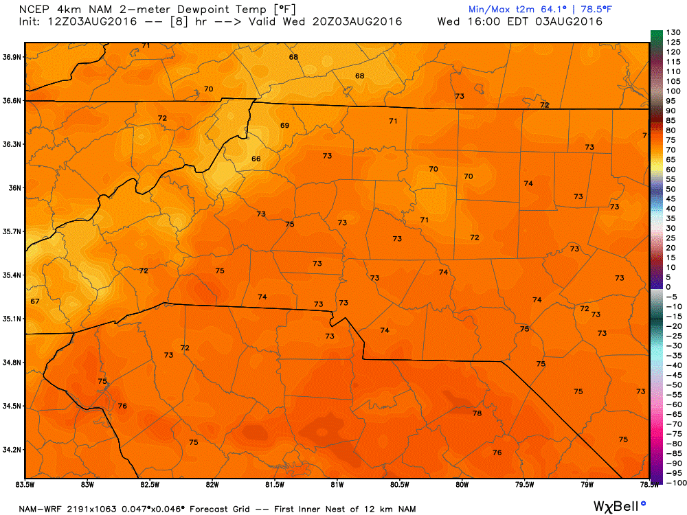 The Dew Points however, keeping the air feeling oppressive out there.