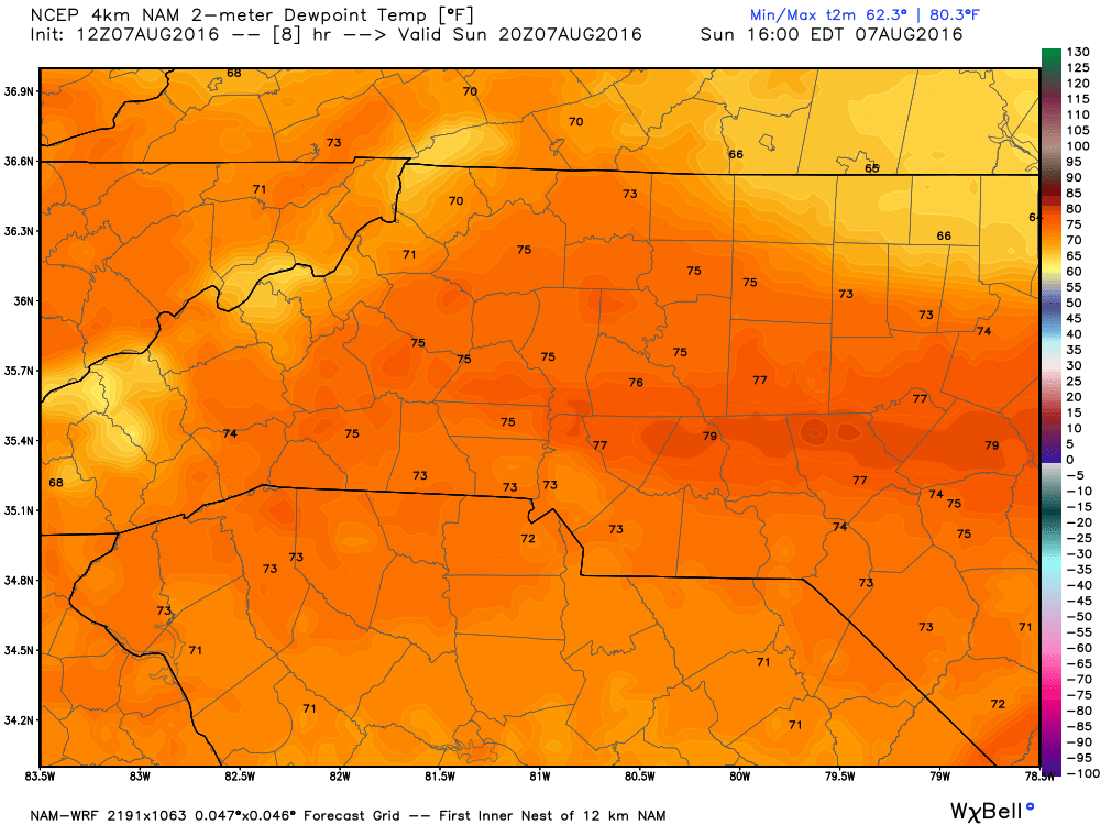There is a lot of moisture in the air. The dew points will be in the mid to upper 70's today making the outside air feel uncomfortable.