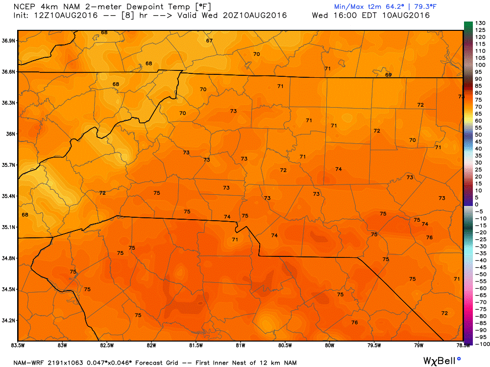 Dew Points will make the air feel oppressive outside at 72º