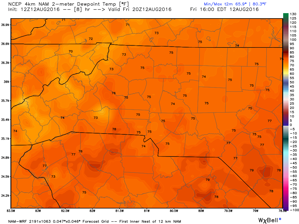 Dew Points will be around 74º making the outside air temperatures feel oppressive. Please hydrate today!!! Do not leave your children or pets in the car unattended without the air conditioner running.