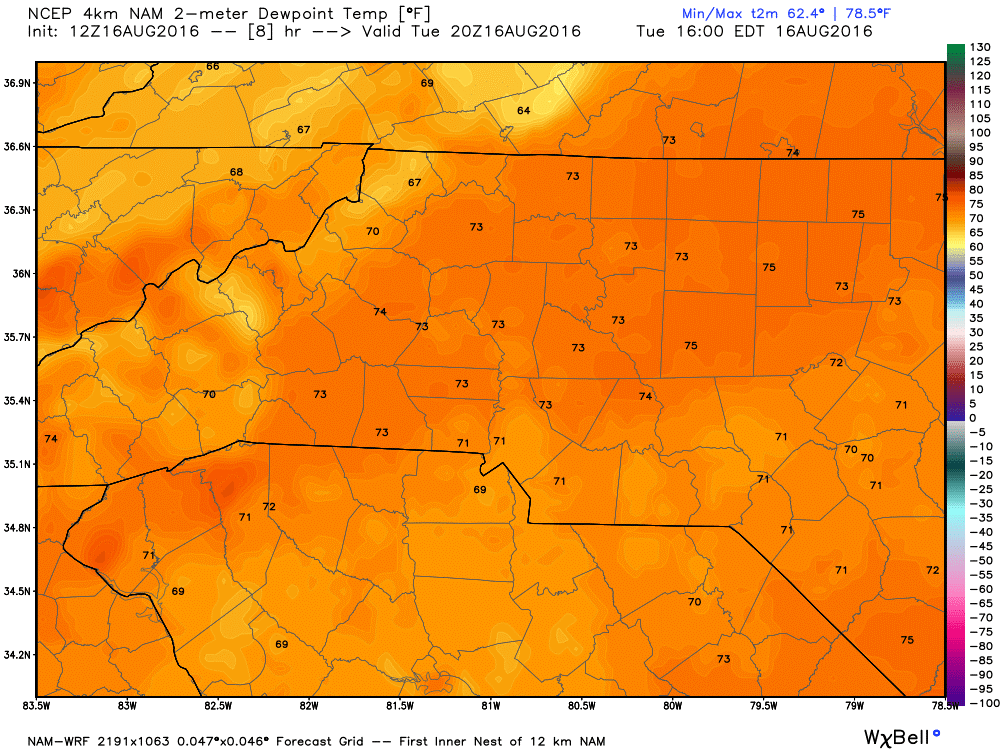 The dew points will be in the low 70's making the outside air feel oppressive.