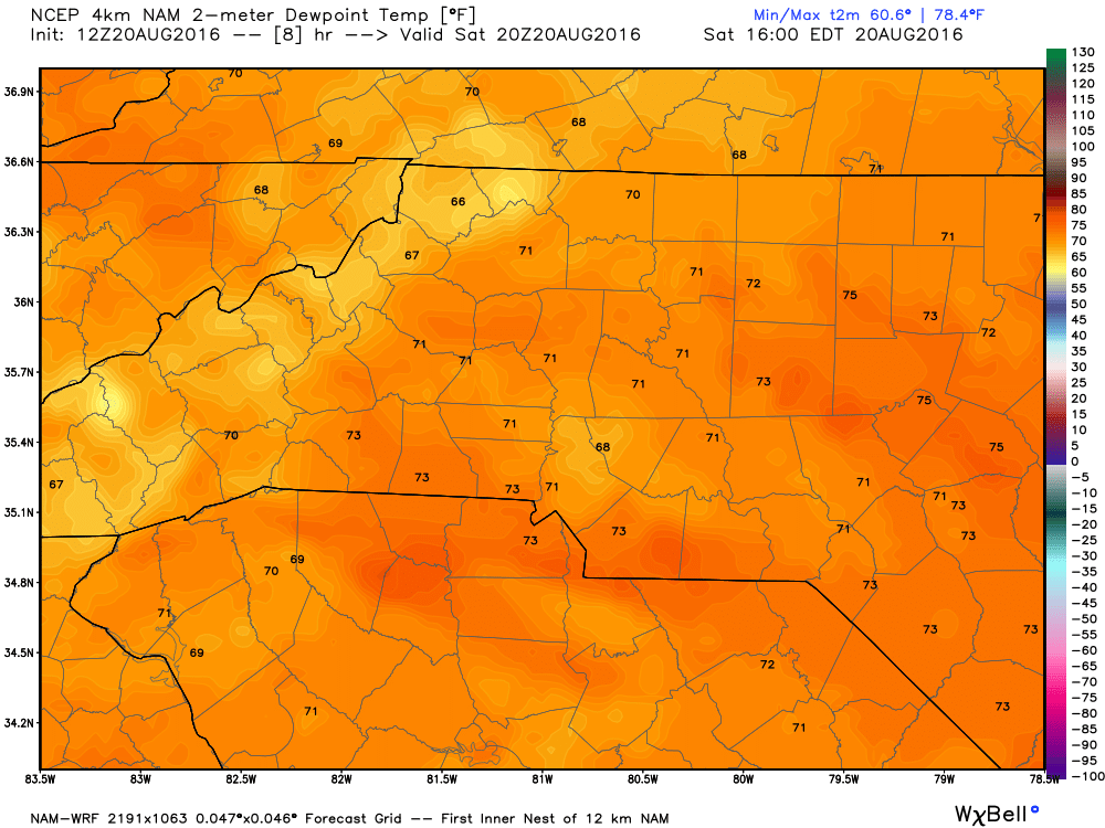 The dew point will be in the low 70's today keep that outside air feeling Oppressive.
