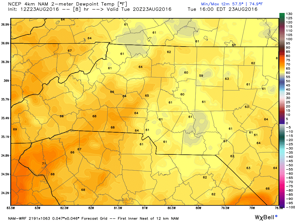 The dew points will top out at 61º
