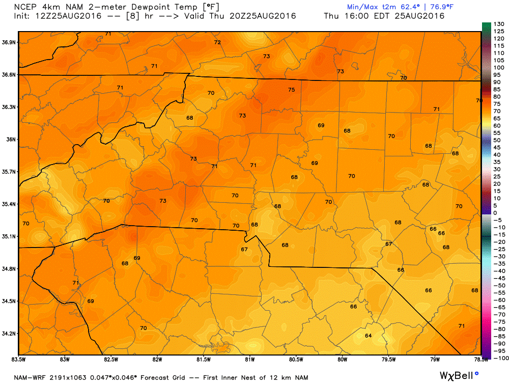 Dew point swill be in the upper 60's once again making the outside air feel uncomfortable.