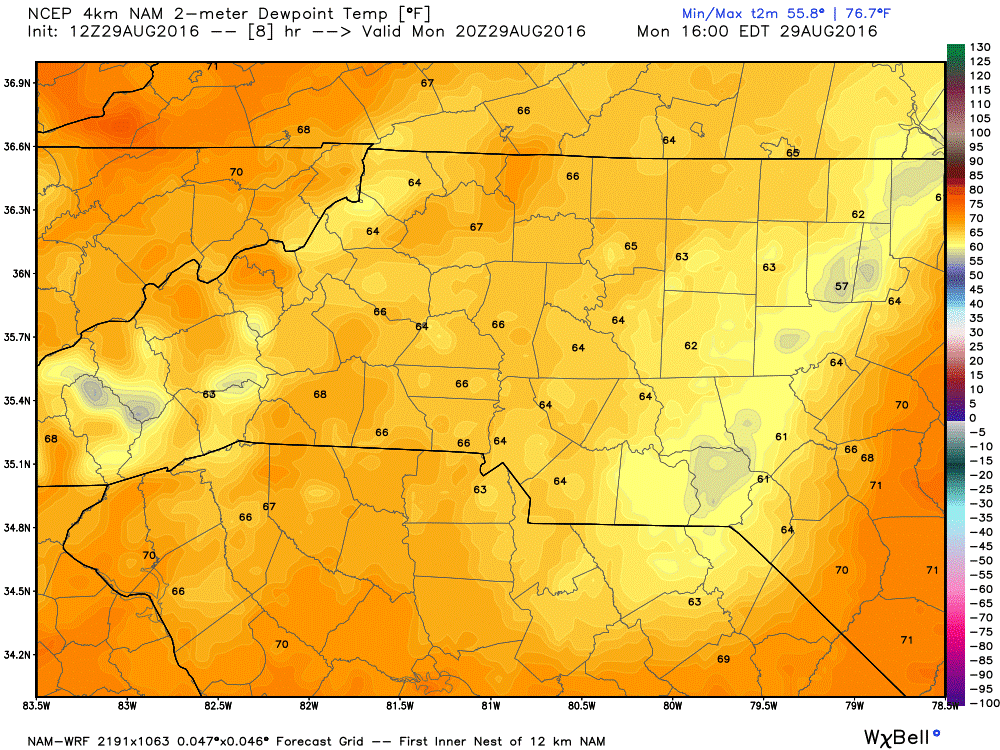 The Dew Points will be in the mid 60's keeping the feel to the outside air a little sticky