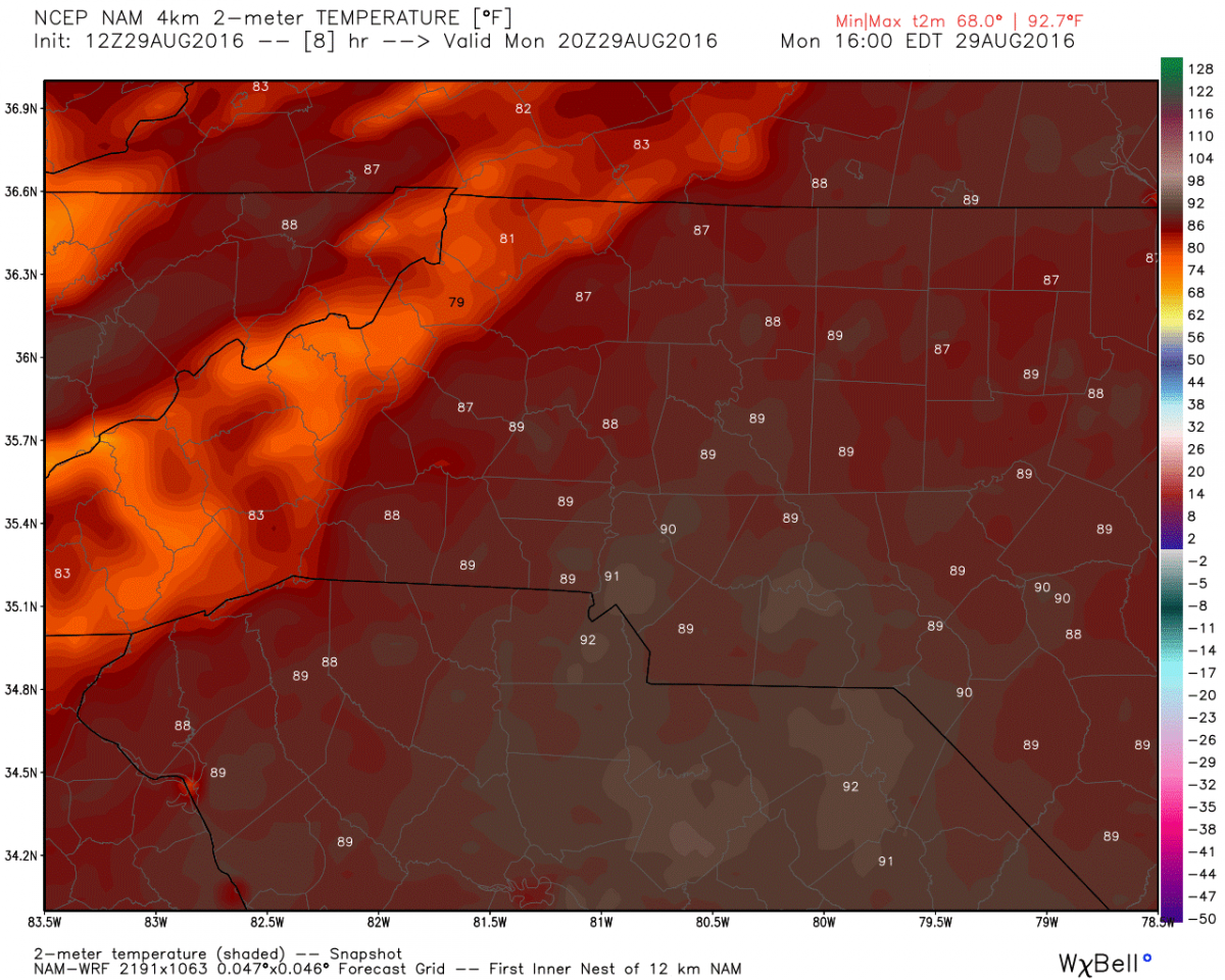 The high today will top out at 89º