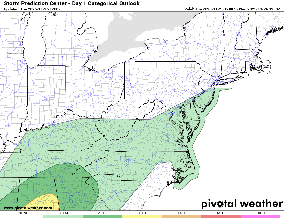 advertise your local business here »The Storm Prediction Center has placed all of Rowan County under a General Thunderstorm Risk for today. This is the lowest tier on the SPC scale, but it does indicate the potential for a few thunderstorms as a cold front approaches the region.