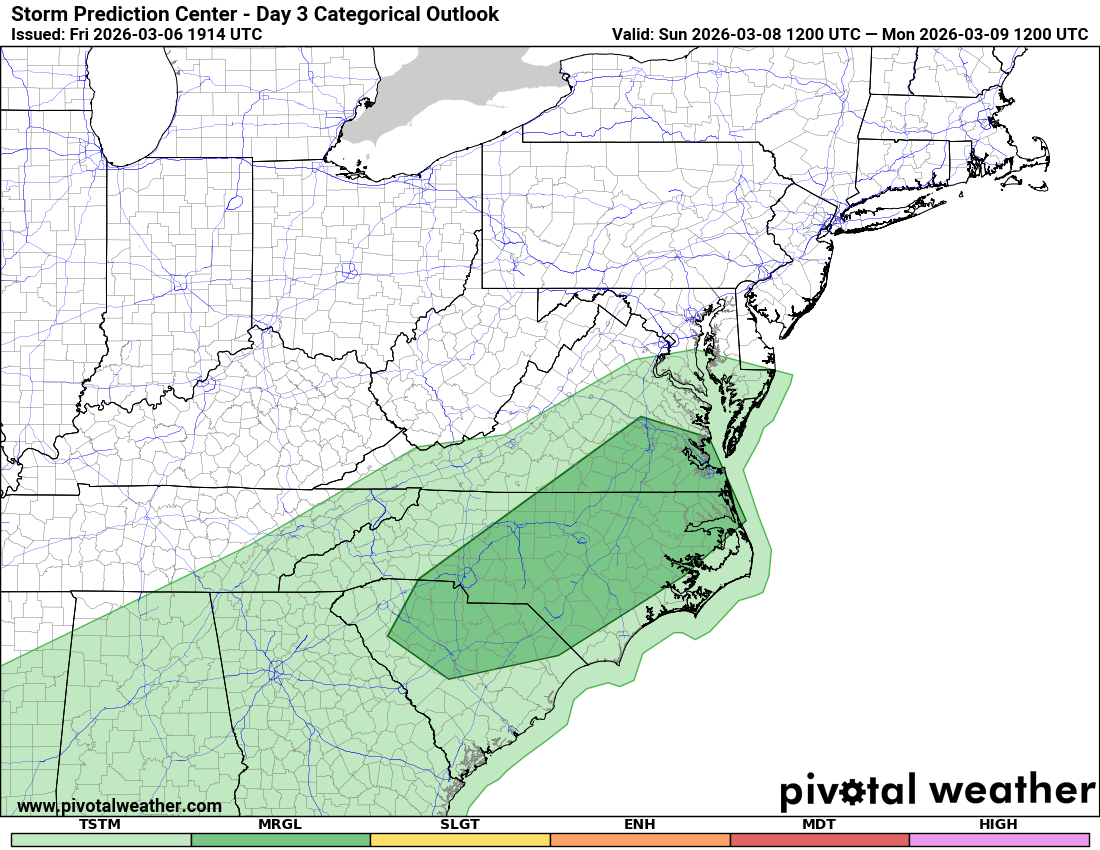 Marginal Risk for Severe Storms Sunday Across the Carolinas