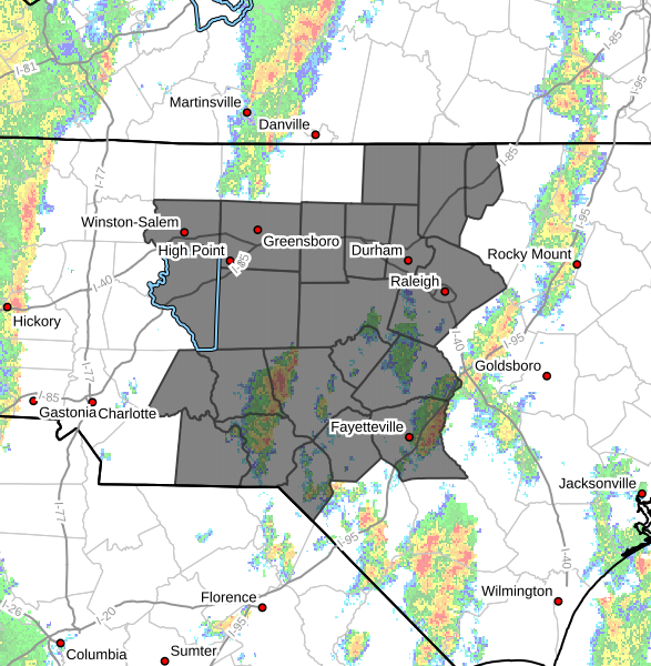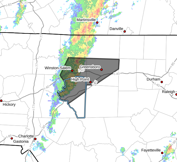 A strong thunderstorm was being tracked by Doppler radar at 8:04 AM EDT, moving northeast across the Triad region.